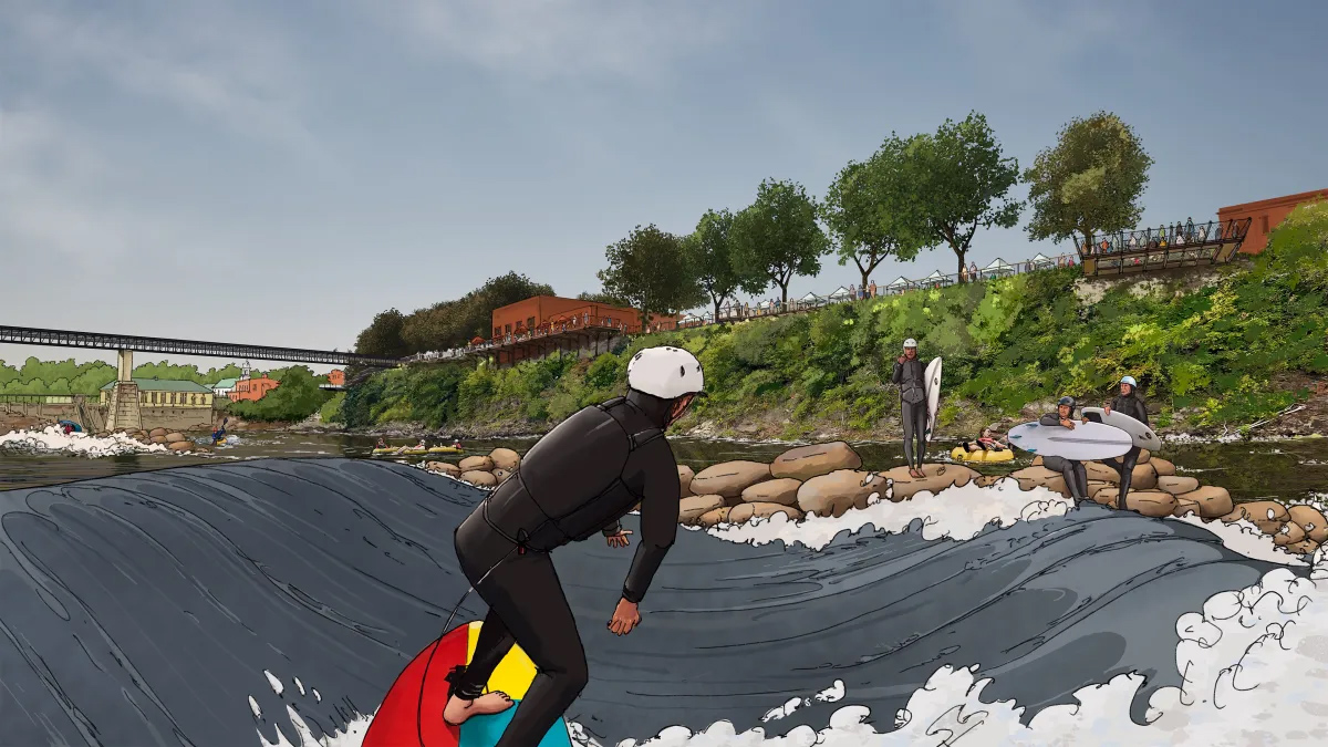 Overall plans for the project, formerly known as Run of River, include improved river access, whitewater paddling and surfing features, and other recreation infrastructure, including a riverfront boardwalk and a four-season trail system along the river.